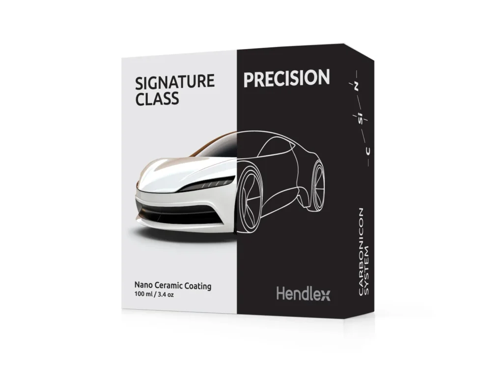 Introducing Hendlex Signature Class Precision, also known as Precision + 15 PROTECTION FACTORS, a groundbreaking ceramic coating engineered to deliver superior, long-lasting protection for your vehicle’s paintwork. Powered by our innovative CARBONICON system, in which Carbon, Nitrogen and Silicon atoms are bonded, forming ceramic type Si-N-C chemical bonds. This advanced formula creates an impenetrable barrier against the widest spectrum of environmental threats. Beyond its robust protective capabilities, CARBONICON technology imparts an extraordinary, glass-like sleekness to coated surfaces, preventing contaminants from adhering and simplifying maintenance. Most importantly, this unparalleled sleekness and comprehensive protection are achieved with minimal compromise to durability, ensuring your vehicle remains shielded and stunning for up to three years.